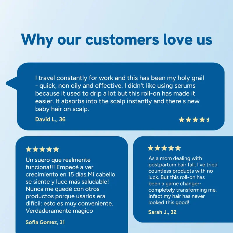 “This is my second month using it, and I can already see the difference. I used to have a pretty wide part and could see my scalp in photos. Now, it’s definitely filling in. The best part? The roll-on is clean, quick, and doesn’t leave any mess. Way better than sprays or oily serums. My wife even noticed new hairs near my crown last week.”